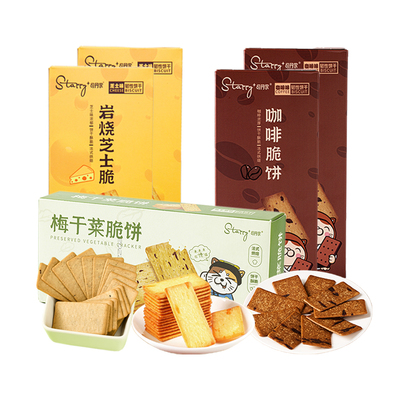 司丹尔岩烧芝士脆咖啡脆梅干菜薄脆饼干办公室宿舍熬夜零食咸饼干。