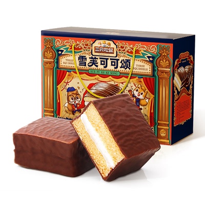 【年货礼盒】快冲!!这是三只松鼠的雪芙蕾蛋糕礼盒!高档礼盒,送礼倍有面!自己吃也很合适!松软的蛋糕包裹着奶油夹心,轻轻一口下去,奶香四溢,嘴里都是奶油的香味,外加黑巧克力包裹!真的是巨好吃!
