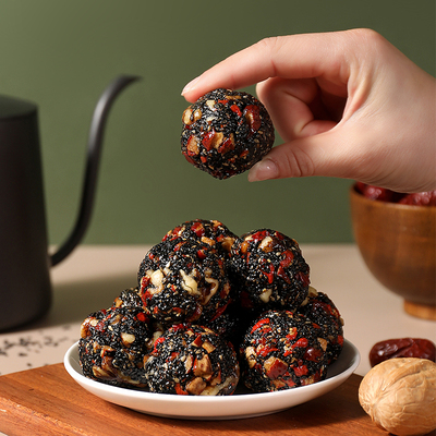 良百多!!五珍黑芝麻丸黑米红枣枸杞黑桑葚核桃仁健康休闲小零食食品!!!
