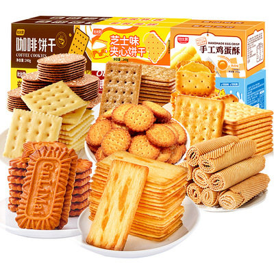 【拍3件】饼干任选共3箱比比赞零食饼干组合,岩烧芝士,咖啡饼,奶盐苏打,芝士脆,鸡蛋卷,黑金芝士等口味任选,酥脆可口,奶香不腻,办公最具必备小零食!