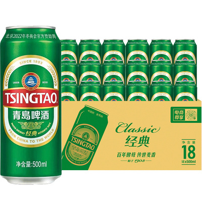 【疯抢进入立减25元,优惠券5元,vip到手70.3元】青岛经典500ml*18听绵密正品,百年酵母,传世麦香!使用经过7级处理以及50多项严格指标的优质水,精选、只为更好品质!