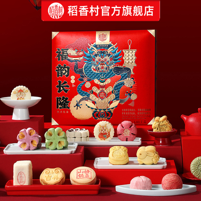 【龙年限定款-40饼20味】1830g福韵长隆-送礼袋【官方旗舰店】线下实体店188元一盒,稻香村传统糕点,松香酥软,口感绵软细腻,味蕾享受微甜香醇,精美礼盒装,送礼佳品!【退货运费险】