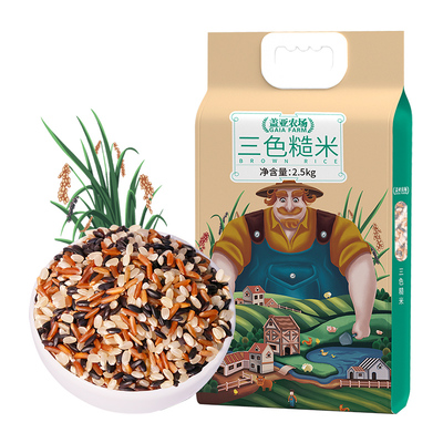 【下单立减22元+2元优惠券+169-35品类券+88vip到手14.8元/5斤】盖亚农场三色糙米2.5kg,新五谷杂粮米粗粮饭低脂饱腹健身大米代餐