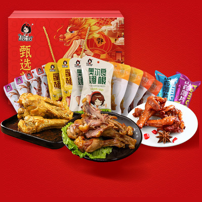 【靓媳妇】卤味年货大礼包,精美外包装,龙年送礼好物,全肉10味20袋+赠2袋山药薄片,到手满满一箱;创新鲜卤工艺,美味一次到“胃”,采用独特的工艺,加入数十种天然香辛料卤制而成,醇厚卤香搭配微麻微辣的口感,让你唇齿留香,根本停不下来!